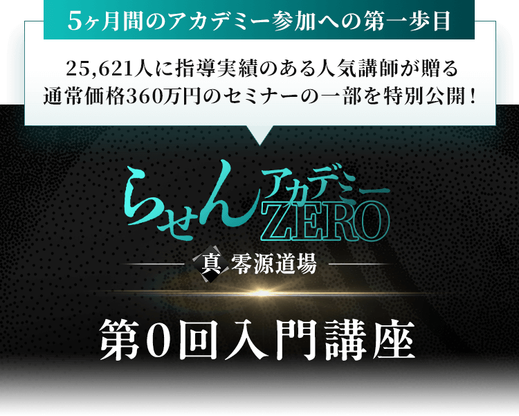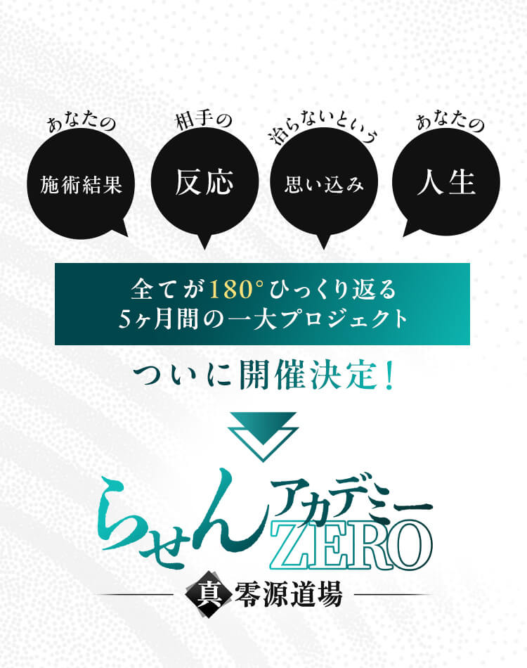 必ずしもそうではありませんが、基本的に5ヶ月間で米澤先生から『らせん零』の真髄を直接指導いただく『らせんアカデミーZERO~真零源道場~』への参加を本気で考えている方に向けた決断の場として第0回入門講座をご用意しております。