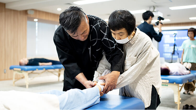 2人1組で実践し、その理論を身体で理解。あなたの手で、常識では考えられない患者さんの変化をその場で引き出すことを体験します。