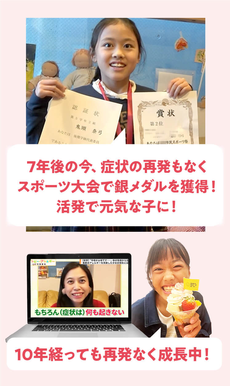 そんな中トチロー先生に出会い、身体を診てもらいながら自宅でセルフケアを続けていくと、なんと今では卵を丸々1個食べられるように!周りのみんなと同じ給食が食べられるようになりました!